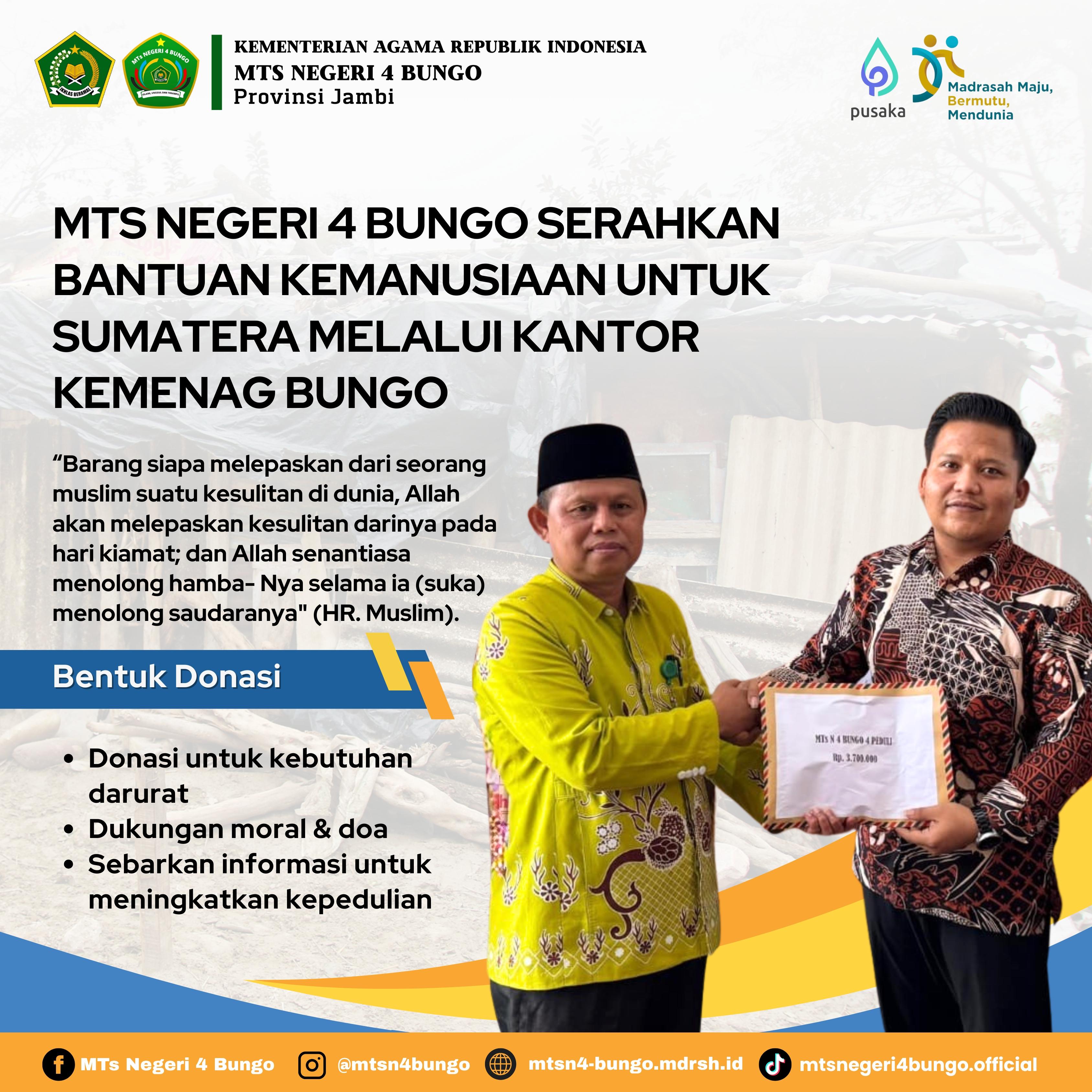 Bungo, (MTsN 4 Bungo)- Keluarga besar MTsN 4 Bungo menyatakan kesiapan penuh untuk mengikuti dan menyukseskan Upacara Peringatan Hari Amal Bhakti (HAB) Kementerian Agama Republik Indonesia ke-80 pada tahun 2026....