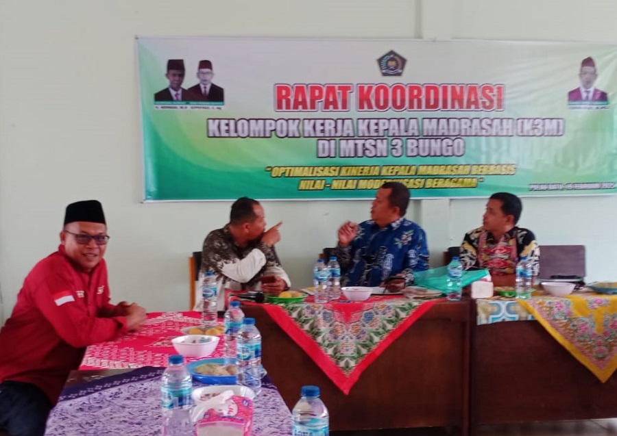 Bungo (MTsN 4 bungo) – Hari ini (19/2) Kepala MTs N 4 Bungo turut serta menghadiri Rapat Koordinasi Kelompok Kerja Kepala Madrasah (K3M) yang digelar di MTs Negeri 3 Bungo, yang terletak paling ujung wilayah barat kabupaten Bungo Provinsi Jambi.