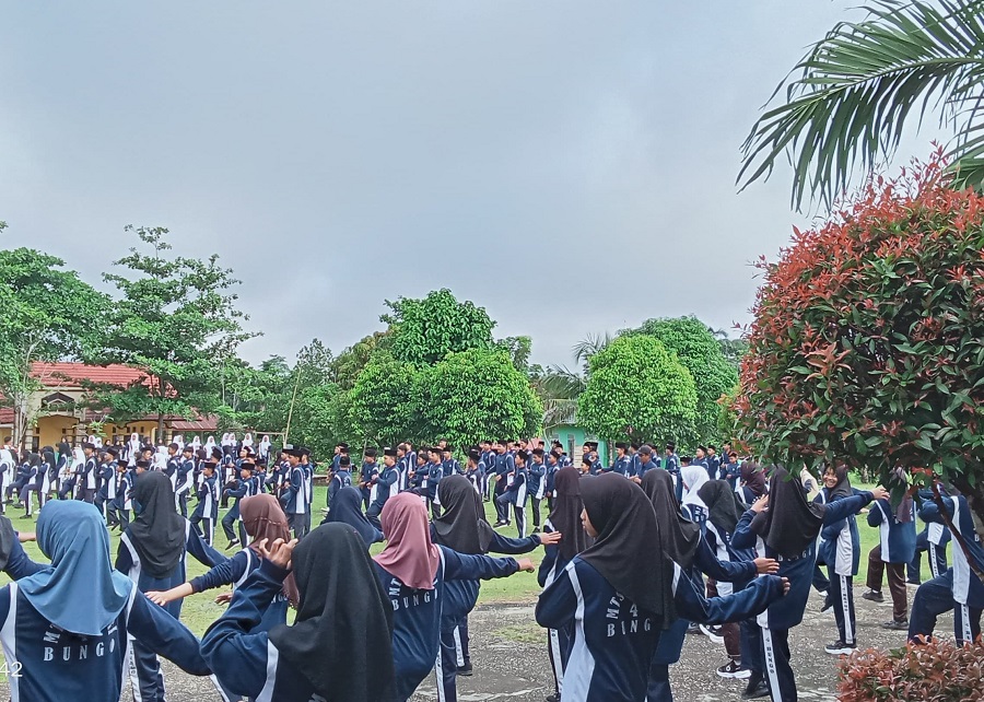 Bungo (MTsN 4 Bungo) Pagi ini (16/4) Siswa-siswi Madrasah seperti pagi rabu biasanya, menjadi agenda khusus untuk melaksanakan senam kebugaran salah satu program unggulan Madrasah mencetak generasi bukan saja unggul di bidang akademik akan tetap unggul juga di bidang Non Akademik.