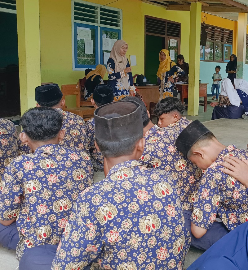 Bungo - (MTsN 4 Bungo) - Puskesmas Kuamang Kuning I, adakan skrining kesehatan (Pemeriksaan status gizi, tekanan darah, gigi, mata, dan telinga), skrining kejiwaan, dan pembinaan PHBS (Perilaku Hidup Bersih dan Sehat) terhadap kurang lebih 72 siswa-siswi MTsN 4 Bungo kelas VIII. Skrining kesehatan ini dipimpin oleh drg. Gusmalini, Ns.Afrida, Doli H. Nadapdap, SKM, Harumi Fitri, SKM, dkk, dan dua bidan desa, Dusun Daya Murni.