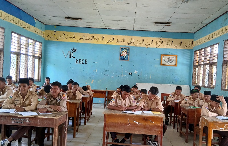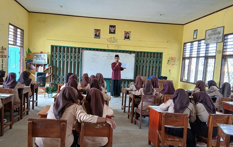 Bungo, (MTsN 4 Bungo) Ratusan siswa-siswi Madrasah Tsanawiyah Negeri (MTs N) 4 Bungo Pelepat Ilir, Kabupaten Bungo mengikuti kegiatan pelatihan penulisan pegon dan aksara Melayu bersama Mudir Rumah Tahfidz Pasir Putih Ustadz Syarif Abdurrahman, Jumat (8/8/2025).