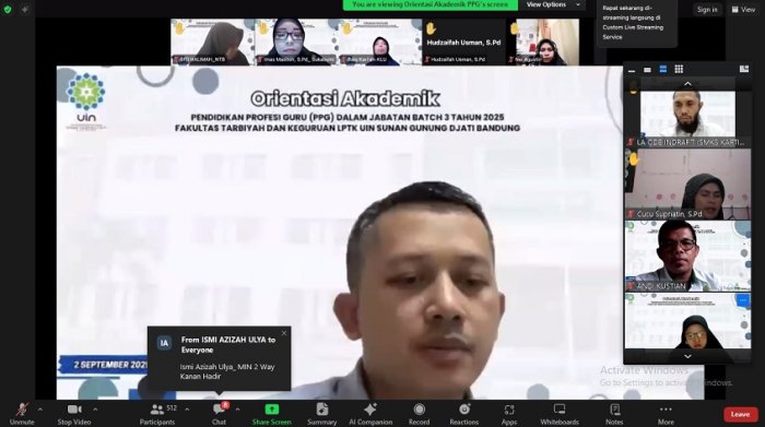 Bungo (MTN 4 Bungo) - Guru Mata Pelajaran Sejarah Kebudayaan Islam (SKI) dari MTsN 4 Bungo berpartisipasi dalam kegiatan Orientasi Akademik Pendidikan Profesi Guru dalam Jabatan (PPPG) Batch 3 Tahun 2025. Kegiatan ini merupakan bagian dari program peningkatan kompetensi dan profesionalisme guru yang diselenggarakan oleh Fakultas Tarbiyah dan Keguruan LPTK UIN Sunan Gunung Djati Bandung.