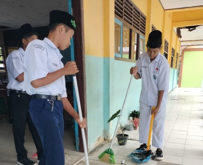 Bungo (MTs N 4 Bungo)-Dalam rangka membangun generasi yang peduli terhadap kebersihan dan lingkungan, MTsN 4 Bungo terus berkomitmen menanamkan nilai-nilai cinta kebersihan kepada seluruh siswanya. Program ini menjadi salah satu upaya madrasah untuk menciptakan lingkungan belajar yang sehat, nyaman, dan kondusif, sekaligus membentuk karakter siswa yang bertanggung jawab terhadap kebersihan.