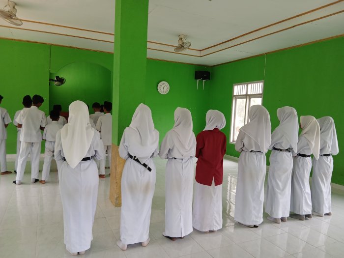 Bungo (MTsN 4 Bungo) � Mushola MTsN 4 Bungo dipenuhi suasana khusyuk saat siswa kelas VIII D melaksanakan latihan sholat Subuh berjamaah. Kegiatan ini menjadi bagian dari persiapan menghadapi perlombaan sholat berjamaah yang akan dilaksanakan mulai pada hari selasa 16 September 2025.