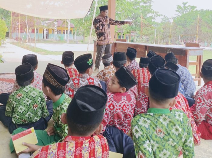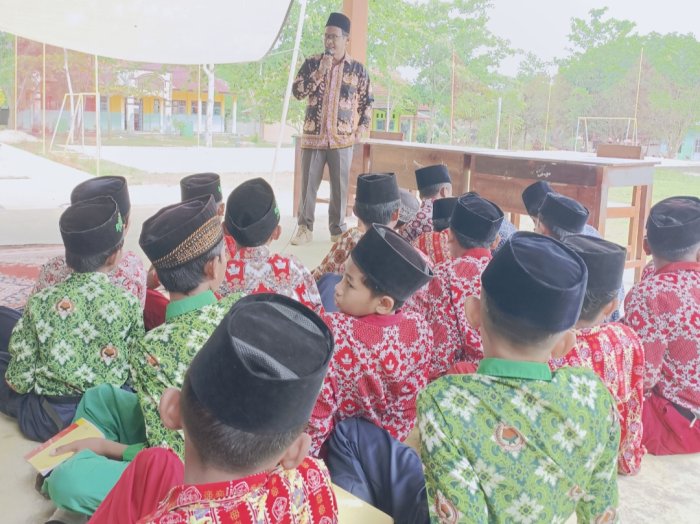 Bungo - (MTsN 4 Bungo) - Wakil Kepala Bidang Kesiswaan (Wakasis) MTsN 4 Bungo, Bapak Suranto, S.Ag, usai kegiatan pagi, memberikan nasihat kepada para siswa mengenai pentingnya disiplin dan bahaya perilaku bullying di lingkungan madrasah. Kegiatan ini berlangsung di halaman madrasah dan diikuti oleh seluruh siswa serta dewan guru.