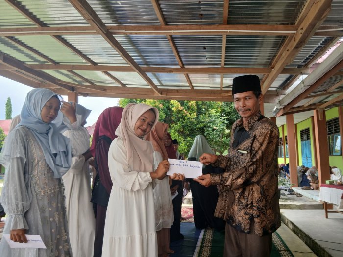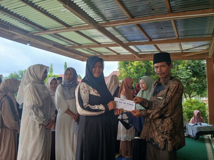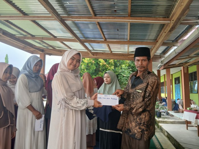 Bungo (MTsN 4 Bungo) - Hari ini (19/9) mengadakan pembagian hadiah lomba sholat subuh berjamaah pada peringatan Maulid Nabi Muhammad SAW di halaman madrasah. Kegiatan ini merupakan salah satu rangkaian acara peringatan Maulid Nabi Muhammad SAW yang diadakan oleh MTsN 4 Bungo.