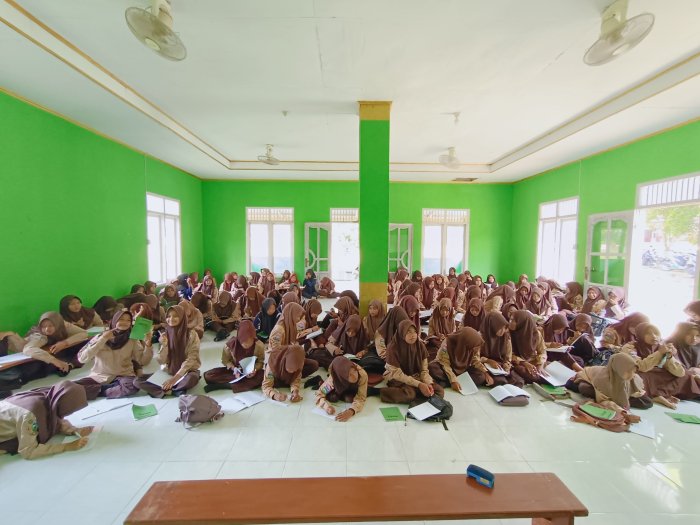 Bungo (MTsN 4 Bungo) - Hari ini (26/9) Pada Jum’at sore, suasana di MTsN 4 Bungo tampak berbeda dari biasanya. Seluruh siswi putri berkumpul dengan penuh semangat untuk mengikuti kegiatan menulis Pegon (Arab Melayu) yang dipandu oleh Ibu Ita Mustainna, M.Pd. Kegiatan ini menjadi salah satu bentuk pembelajaran tambahan yang bertujuan memperkaya wawasan keagamaan sekaligus budaya para siswi.