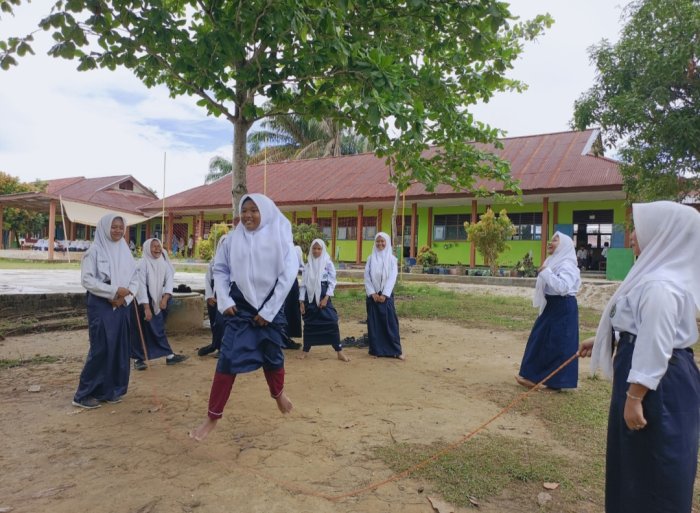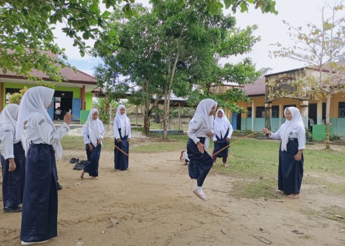 Bungo - (MTsN 4 Bungo) - Siswa Madrasah Tsanawiyah Negeri (MTsN) 4 Bungo masih melestarikan salah satu permainan tradisional lompat tali karet di sela-sela jam istirahat. Kegiatan ini menjadi pemandangan yang cukup unik di tengah maraknya permainan modern berbasis teknologi yang kini digemari anak-anak.