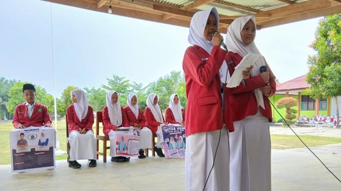Bungo, (MTsN 4 Bungo)- 6 Oktober 2025 – Suasana di MTsNegeri 4 Bungo tampak semarak saat para calon Ketua Organisasi Siswa Intra Madrasah (OSIM) menyampaikan visi dan misi mereka di hadapan para guru dan seluruh siswa. Acara yang berlangsung di Panggung madrasah ini menjadi salah satu bagian dari rangkaian pemilihan Ketua OSIM periode 2025/2026, yang bertujuan untuk membentuk kepemimpinan siswa yang inspiratif dan bertanggung jawab.