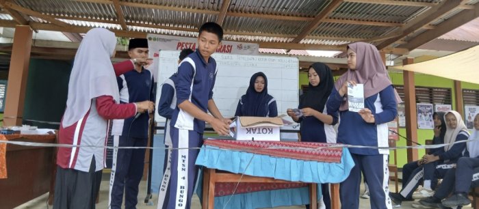 Bungo - (MTsN 4 Bungo) - Pemilihan Ketua dan Wakil Ketua Organisasi Siswa Intra Madrasah (OSIM) di MTsN 4 Bungo untuk periode 2025-2026 telah selesai dilaksanakan. Proses pemungutan suara berlangsung secara demokratis dengan melibatkan seluruh siswa dan seluruh keluarga besar MTsN 4 Bungo sebagai pemilih.