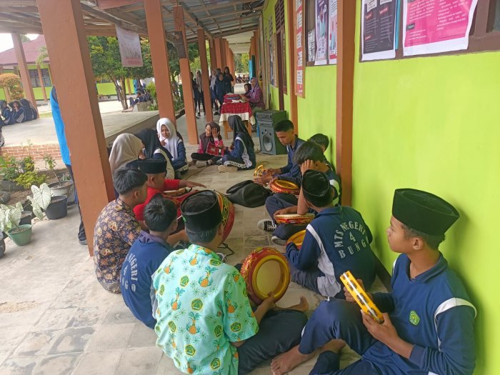 Bungo (MTsN 4 bungo) - Kemarin (16/10) Setiap hari Kamis siang, suasana di lingkungan MTsN 4 Bungo terasa berbeda. Suara rebana berpadu dengan lantunan shalawat menggema merdu dari ruang kegiatan ekstrakurikuler. Kegiatan tersebut merupakan latihan rutin kelompok Hadroh yang menjadi salah satu ekstrakurikuler unggulan di madrasah ini.