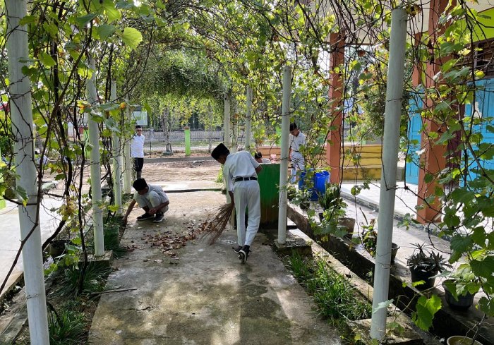 Dipimpin langsung oleh Kepala MTsN 4 Bungo, Bapak Ahmad Syarif, kegiatan ini dimulai pukul 07.00 WIB dengan pembagian tugas kepada setiap kelas. Para siswa terlihat antusias mencabut rumput liar, menyapu daun-daun kering, hingga merapikan tanaman di kebun madrasah. Guru-guru turut mendampingi dan memberikan arahan agar lingkungan madrasah tetap asri dan nyaman.