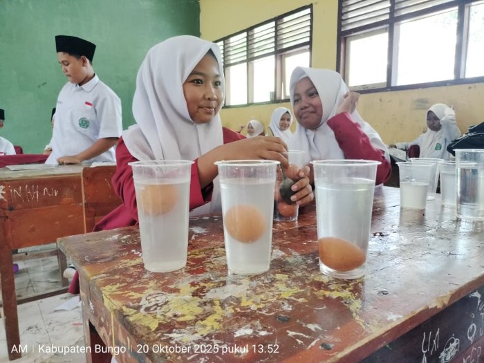 Bungo (MTsN 4 Bungo) Kegiatan pembelajaran Ilmu Pengetahuan Alam (IPA) di kelas VII.B berlangsung seru dan penuh antusiasme. Pada Senin (20/10), siswa MTsN 4 Bungo mempelajari materi tentang Kerapatan Zat, yang membahas fenomena terapung, melayang, dan tenggelamnya benda dalam zat cair.