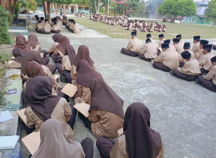 Bungo - (MTsN 4 Bungo) - Suasana pagi yang cerah di MTsN 4 Bungo diisi dengan kegiatan kajian Kitab Kuning yang diikuti oleh para siswa dan guru. Kegiatan ini bertujuan untuk menanamkan nilai-nilai keislaman serta meningkatkan pemahaman agama di kalangan pelajar.