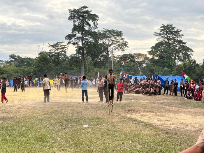 Permainan egrang ini tidak hanya menjadi ajang hiburan, tetapi juga sarana untuk melatih ketangkasan, keberanian, dan kerja sama antar peserta. Para pembina pramuka turut memberikan dukungan dan semangat kepada para peserta agar tetap sportif dan menikmati kegiatan dengan gembira.