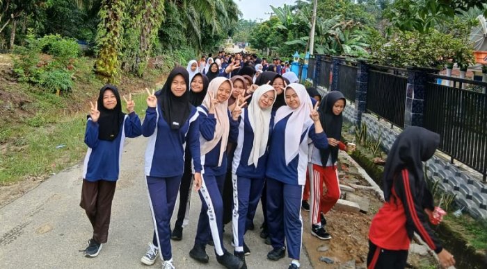 Salah satu siswa kelas VIII, mengungkapkan kegembiraannya mengikuti kegiatan ini. "Senang sekali bisa jalan kaki bersama teman-teman sambil melihat suasana kampung. Badanku terasa lebih segar, apalagi tadi dapat hadiah," katanya.