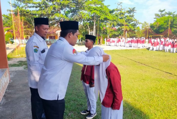 Bungo - (MTsN 4 Bungo) - MTsNegeri 4 Bungo secara resmi memulai Ujian Semester Ganjil Tahun Pelajaran 2025/2026 melalui prosesi penyerahan Kartu Tanda Pengenal Ujian kepada salah satu peserta didik pada Senin pagi (1/12). Penyerahan simbolis ini dilakukan langsung oleh Pembina Apel, Bapak H. Sumadianya, S.Ag, dan Ketua Panitia Ujian Bapak Andi Kustian, S.Pd.I, usai pelaksanaan apel persiapan ujian di halaman madrasah.