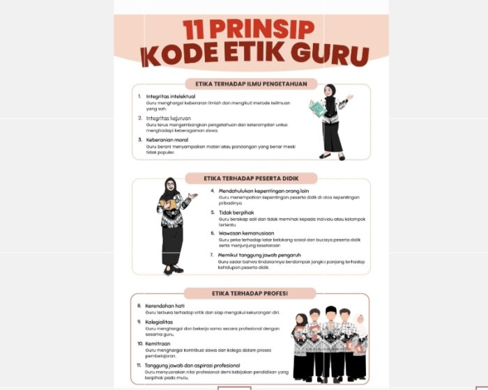 Poster yang disusun menampilkan nilai-nilai utama dalam kode etik profesi guru, seperti integritas, tanggung jawab, profesionalisme, dan komitmen terhadap peserta didik. Melalui kegiatan promosi ini, kedua peserta PPG menyampaikan pentingnya pemahaman dan penerapan kode etik dalam keseharian praktik mengajar.
