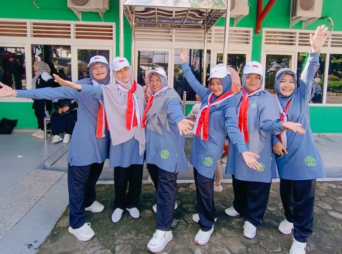 Bungo, (MTsN 4 Bungo)-Gelak tawa pecah di halaman depan Kantor Kementerian Agama Kabupaten Bungo pada Kamis (18/12/2025). Ada pemandangan unik dan mengundang tawa saat tim dari MTsN 4 Bungo yang terdiri dari ibu-ibu guru dan pegawai mengikuti Lomba Keterampilan Baris-Berbaris (LKBB) dalam rangka memeriahkan Hari Amal Bakti (HAB) Kemenag ke-80.