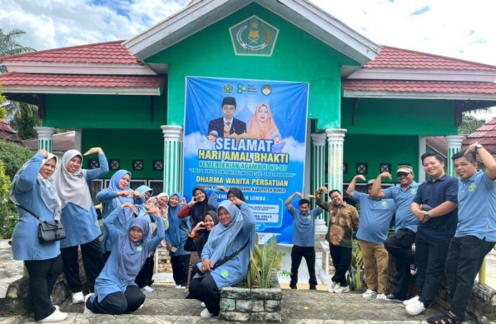 Sesi foto bersama ini bukan sekadar rutinitas, melainkan simbol eksistensi dan solidaritas MTsN 4 Bungo sebagai salah satu Satuan Kerja yang paling aktif dalam memeriahkan peringatan HAB tahun ini.