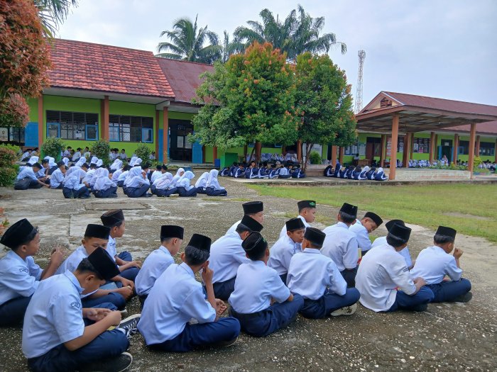 Bungo (MTsN 4 Bunho) - MTsN 4 Bungo kembali menghidupkan pengajian pagi sebagai pembuka proses pembelajaran pada semester genap tahun 2026. Kegiatan yang dilaksanakan pada Selasa (13/01) ini diisi dengan pembacaan Surah Al-Waqi’ah secara bersama-sama, menghadirkan suasana khusyuk dan menenangkan di lingkungan madrasah. Lantunan ayat suci Al-Qur’an menjadi pengantar hati agar setiap langkah menuntut ilmu bernilai ibadah dan penuh keberkahan.