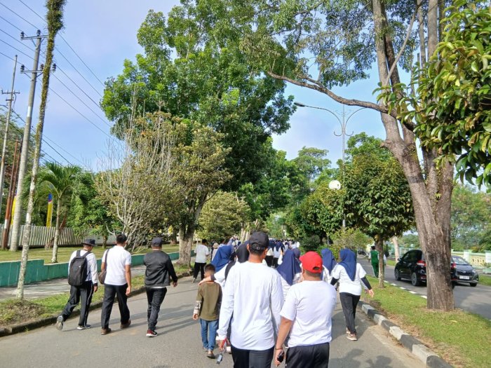 Bungo (MTsN 4 Bungo) - Dalam rangka memeriahkan Hari Amal Bakti (HAB) Kementerian Agama, keluarga besar MTsN 4 Bungo turut ambil bagian dalam kegiatan jalan santai yang diselenggarakan di Kabupaten Bungo pada Kamis (15/01). Kegiatan ini diikuti dengan penuh antusias oleh para pendidik, tenaga kependidikan, serta perwakilan siswa sebagai wujud kebersamaan dan kekompakan insan madrasah.