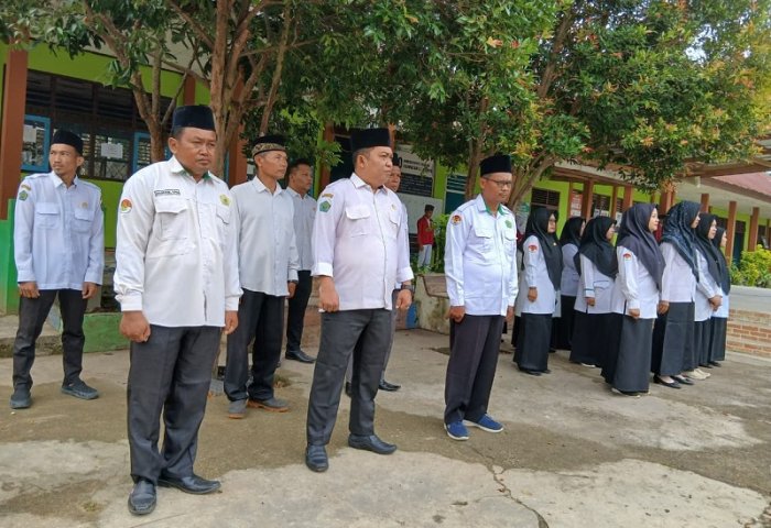 Bungo, (MTsN 4 Bungo)-Suasana khidmat terasa di lapangan utama MTsN 4 Bungo pada Senin pagi, 9 Februari. Seluruh siswa, guru, dan staf tata usaha mengikuti upacara bendera yang dipimpin oleh Wakil Kepala Madrasah Bidang Humas, Anton Suwarjo, S.Pd.I. Dalam kesempatan tersebut, Anton Suwarjo bertindak sebagai pembina upacara dan menyampaikan amanat yang menyoroti pentingnya menanamkan rasa malu sebagai nilai moral dasar manusia.