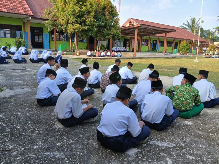 Bungo, (MTsN 4 Bungo) - Rabu pagi (11/2), MTsN 4 Bungo membuka lembaran harinya dengan lantunan ayat suci Al-Qur'an dari Juz 30 Surah Al-Fajr. Di saat fajar perlahan menyibak gelap, suara para siswa menggema lembut di lingkungan madrasah, menghadirkan suasana khidmat yang menenangkan hati dan menyucikan niat sebelum proses pembelajaran dimulai.