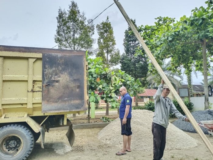 Pantauan di lapangan menunjukkan sebagian besar area utama halaman telah tertutup cor beton secara merata. Saat ini, para pekerja tengah menyelesaikan tahap finishing pada beberapa sudut kecil serta melakukan pembersihan sisa material bangunan.