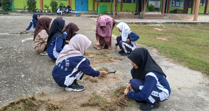 Bungo, (MTsN 4 Bungo) — Menjelang masa libur pembelajaran, keluarga besar MTsN 4 Bungo melaksanakan kegiatan gotong royong bersama membersihkan lingkungan madrasah. Kegiatan ini melibatkan seluruh warga madrasah, mulai dari kepala madrasah, para guru, staf tata usaha, hingga siswa yang dengan penuh semangat bekerja sama membersihkan halaman dan lingkungan sekitar madrasah.