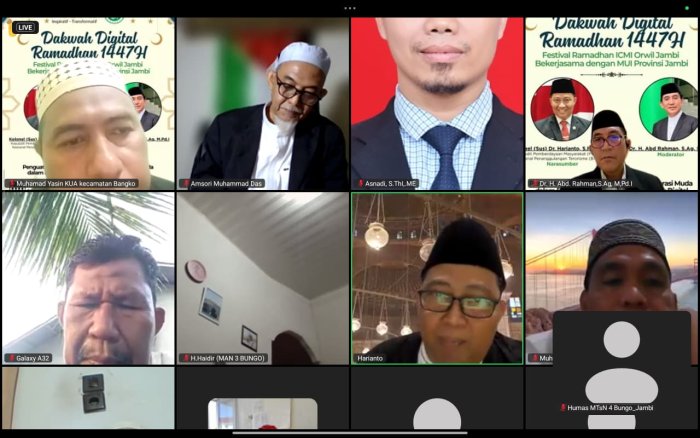 Bungo (MTsN 4 Bungo) — Dalam rangka menyemarakkan bulan suci Ramadan 1447 Hijriyah, Humas MTsN 4 Bungo turut menghadiri kegiatan Dakwah Digital Ramadan yang diselenggarakan secara daring oleh Ikatan Cendekiawan Muslim Indonesia (ICMI). Kegiatan ini menjadi wadah penting dalam memperkuat pemahaman keagamaan sekaligus meningkatkan kesadaran akan tantangan era digital.