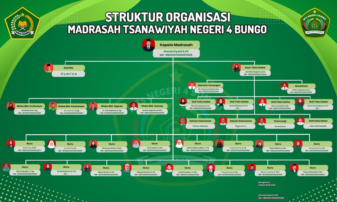 Selamat Datang di Website Resmi MTS Negeri 4 Bungo # Selamat Hari Amal Bakti Kementerian Agama RI Ke-80 Tahun 2026 # Seluruh ASN Satker MTsN 4 Bungo Akan Hadiri Upacara HAB Ke-80 Di Lapangan Exs. MTQ Muara Bungo # Selamat Mengikuti Jambore Cabang Bungo Tahun 2025 # SELAMAT HARI SANTRI NASIONAL TAHUN 2025 # SELAMAT HARI ULANG TAHUN KE-60 KABUPATEN BUNGO TAHUN 2025 " BERSINERGI MEMBANGUN DAERAH, MEWUJUDKAN BUNGO BARU"